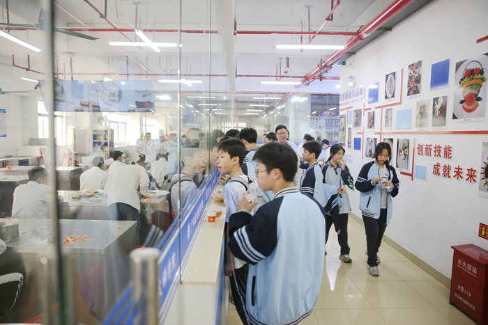 3月26日上午,300名學生(shēng)懷揣著期待(dài)與好奇(qí)走進(jìn)校園,參觀汽車噴漆世賽集訓基地、飛機維修(xiū)實訓基地、烹飪實訓基地等,沉浸式體驗(yàn)學院辦學(xué)特色與教育(yù)、教學(xué)成果,感受多元豐富的校園文(wén)化。