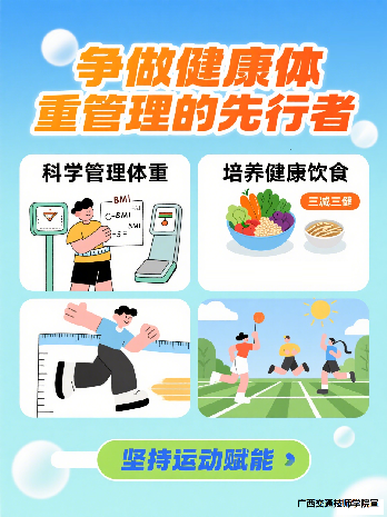 健康,是生命大(dà)廈的(de)基石,承載著我們對幸福生活的向往(wǎng),更(gèng)是我們實現夢想、奔赴未來的堅實(shí)保障。為積極響(xiǎng)應《自治區愛衛會關於將健(jiàn)康體重管(guǎn)理行動等3個行動納入健康廣西行動的通知》(桂愛衛會〔2025〕2號(hào))精神,推動健康理念全(quán)麵融入校(xiào)園生活,並輻射帶動周邊鄉村社區,我們誠摯(zhì)倡議(yì)每一位師生攜(xié)手並肩,爭當健(jiàn)康(kāng)校園與健康鄉村的建設者、推動者和實踐者。為此,我們向(xiàng)全院師生員工發出如下倡(chàng)議: